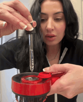 - Sanfte Massage: Beginne an der Kopfhaut und massiere mit sanften, kreisenden Bewegungen. Die 3in1 Massagebürste hilft dabei, die Durchblutung zu fördern, während das Öl gleichmäßig verteilt wird.