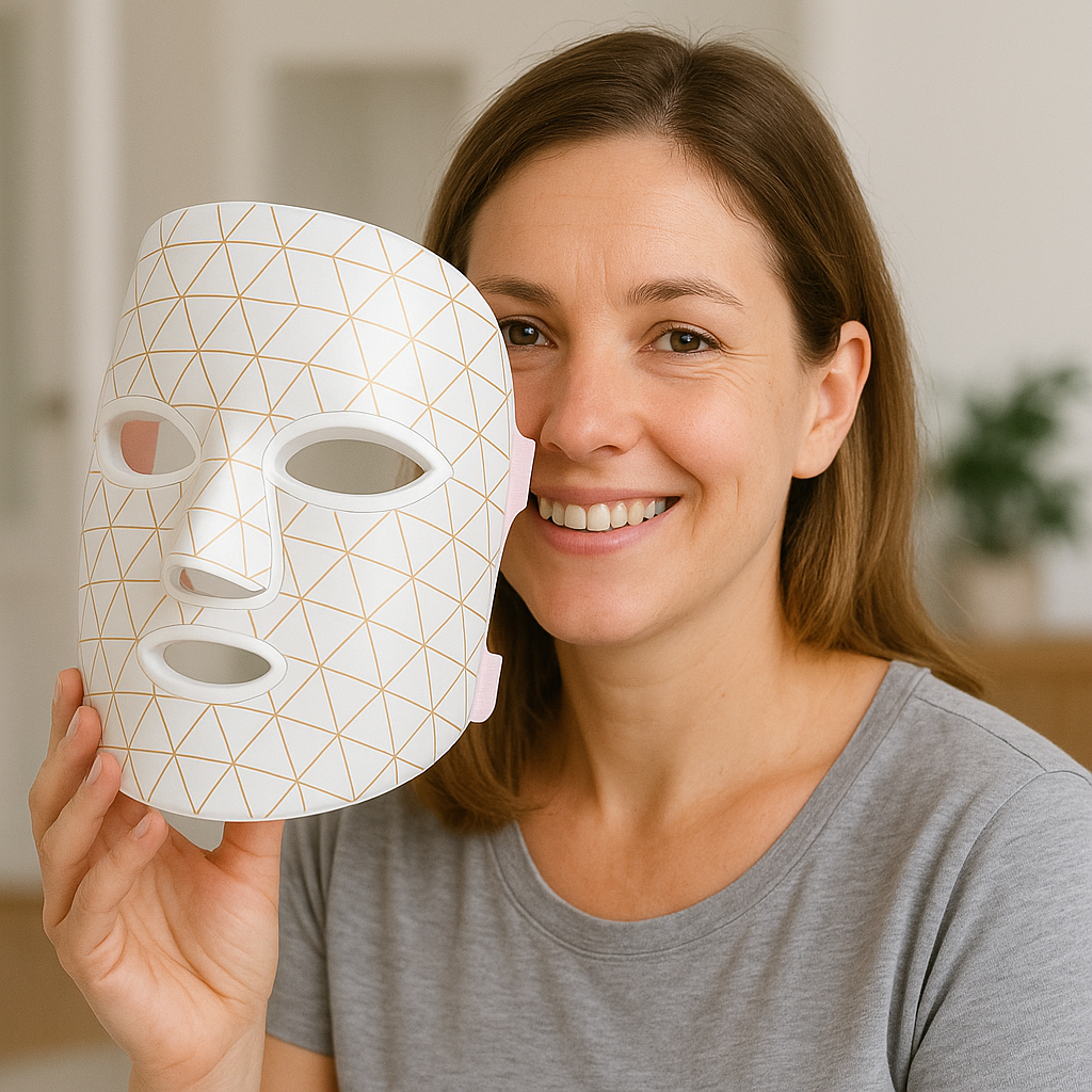 Ja – die Maske ist CE-zertifiziert und für den Heimgebrauch entwickelt. Sie arbeitet mit nicht-invasivem LED-Licht, das sanft zur Haut ist und keine Ausfallzeiten verursacht.